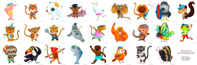 My Rainforest Alphabet for Animal Alphabets. It was very fun to draw these amazing animals. Thank you all for the support this round. @AnimalAlphabets #Rainforest #AnimalAlphabets #animals #characterdesign #cute #kidlitart #kidlitartist #illustration #illustrator #JulianaMotzko
