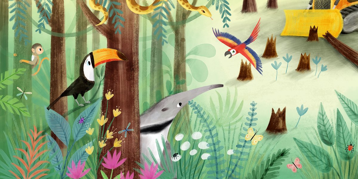 I drew this last year and never got round to posting it, blame the pandemic. Found it when I started tidying up my *slightly messy desktop. *very #rainforestday #rainforest #toucan #kidlitartist #illustration