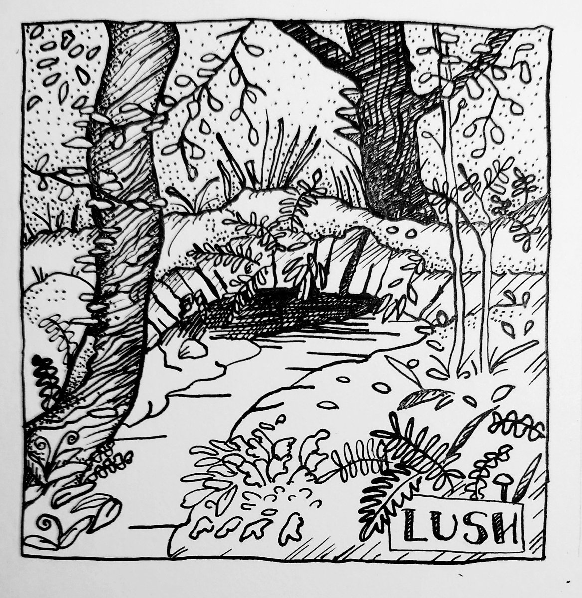 #artDD2022 no 82 LUSH this week's prompt for #inktober52 #Celtic (or Atlantic) #rainforest is one of the rarest ecosystems. Lots of epiphytes which are plants living on other plants without being parasites Therapeutic doodle #dailydrawing #inktober #PlantAwareness @CobbinSteve1