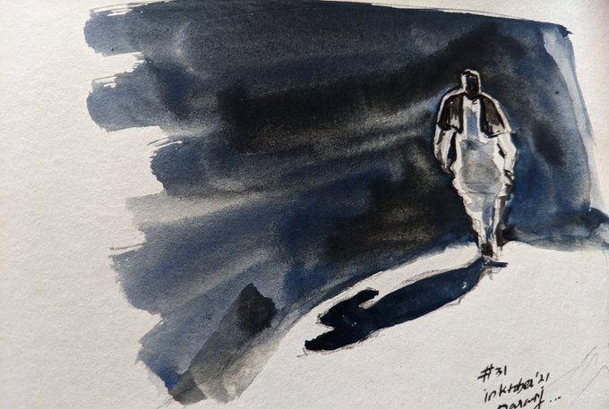 31 கடைசியாத்தான் வந்தாரு விநாயக் மகாதேவ் மாதிரி ராஜா #ராஜா #raja #ilaiyaraja #inktober21 #watercolour #inktober2021 #paraniarts21 #paraniarts #perspective #watercolours