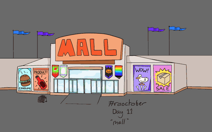 #raoctober2021 Day 11 - "mall" Fun fact: in Australia we call malls "shopping centres"| also i kinda phoned this one in #inktober2021 #raocow #artistontwitter #digitalart