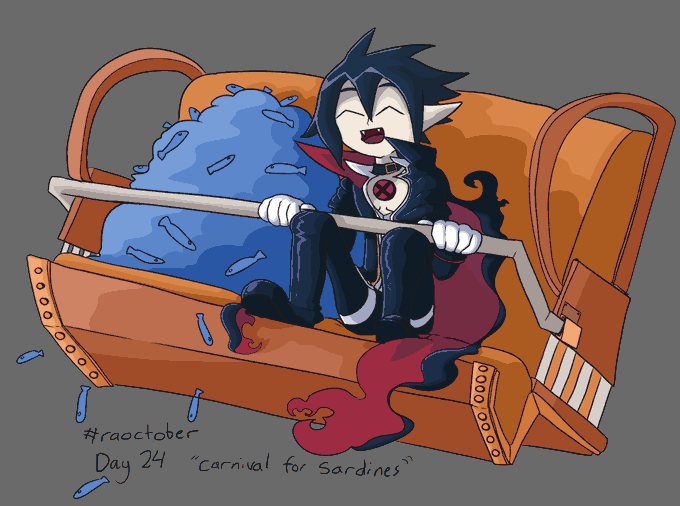 #raoctober2021 Day 24 - "carnival for sardines" A small serving of sardines once a day can provide 13% of vitamin B2; roughly one-quarter of niacin; and about 150% of the recommended daily value of vitamin B12. #Disgaea #artistontwitter #digitalart #inktober2021 #raocow