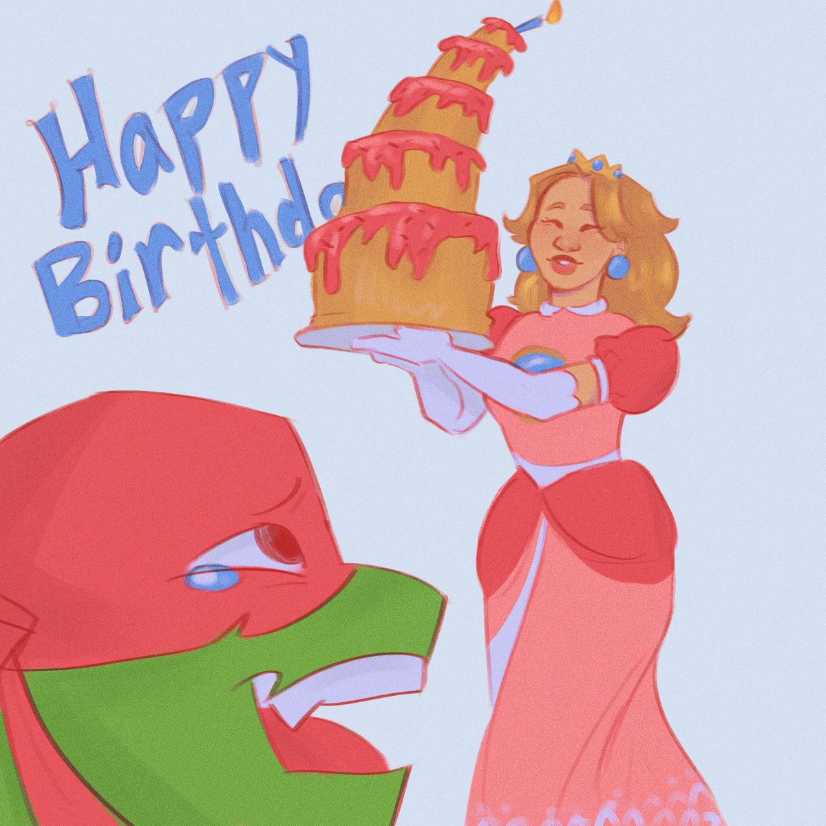 Day 8: Birthday, Peach and Raph, two of my favorite things #TMNTtober #TMNTtober2022 #rottmntfanart #SaveRiseoftheTMNT #raphael #rottmnt #UnpauseRiseoftheTMNT #tmntfanart #princesspeach