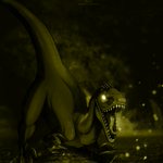 A female #Acheroraptor tries to scare away a #Triceratops that has accidentally strayed too close to its nest. #Paleoart #dinosaurs #raptor