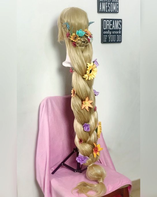 Rapunzel’s wig!!!! It’s not finished yet 😅 But I really wanted to share it already! I will share the progress in reels soon. 🌸🌷🌼 #rapunzel #tangled #rapunzelwig #rapunzelcosplay #dianey #dianeyplus #disneyprincess