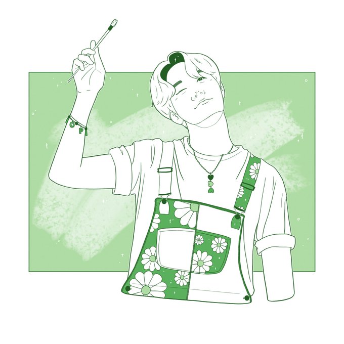 Artsy Hobi 🎨 Now I want overalls like these 😔 And also a Hobi ( ·ᴗ·̥̥̥ ) #btsfanart #raqueltraveink21 #inktober #inktober21 #bts #btsart #jhope
