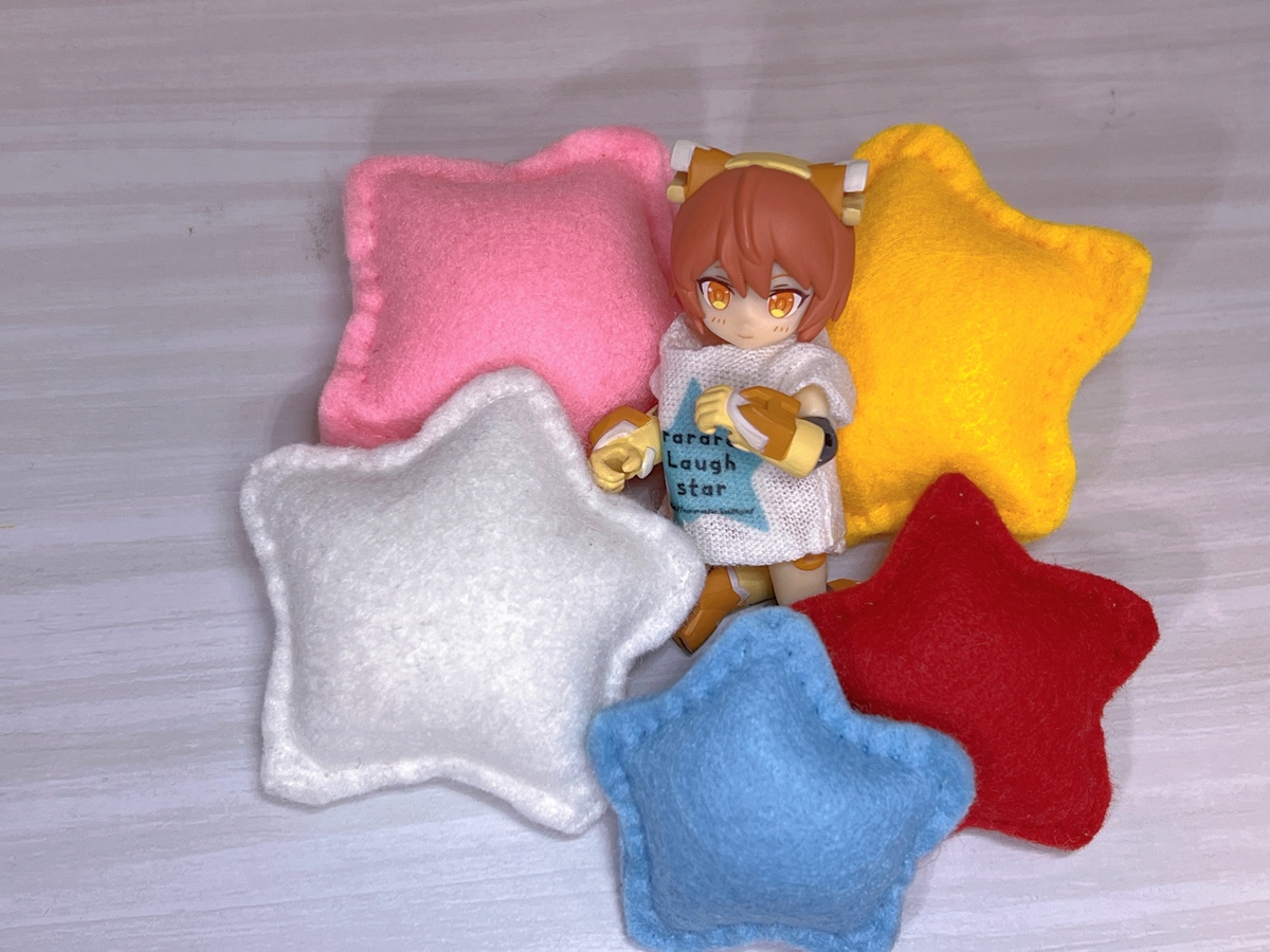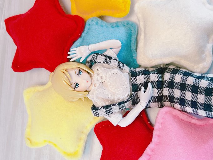 ★ お星さまクッション 夜はぐっすり…☆ お写真のアクセントにもなります。 大きいサイズ 小さいサイズ があります。 詰め合わせセットもございます! BOOTH はこちら rararastar.booth.pm #メガミデバイス #指の上ぬい #オビツろいど #デスクトップアーミー #こえだらいず #rararadoll