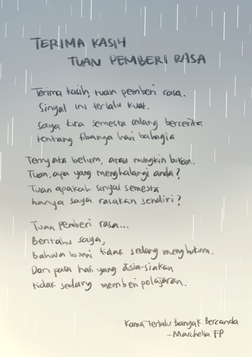Terima kasih tuan pemberi rasa ☔️ What's up with Sadira and rainy days :'D abis baca Kamu Terlalu banyak Bercanda buat inspirasi story Sadira, terus nemu yg cocok pedihnya :'D and please don't mind my ugly writing lol #raru_oc #originalcharacter #ocsbase #ArtistOnTwitter #rkgk
