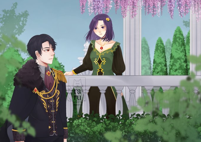 Garden Encounter. Orpheus & Viviane. cannot un-think Bridgerton theme when I draw these two 💖 Orpheus (c) @/AokiTsuki Viviane (c) me #originalcharacter #oc #couple #artistontwitter #raru_oc #zonakaryaid