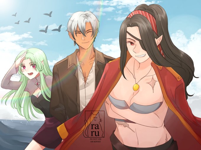 Pirates gang ☠️ Making new universe❌ Extending universe ⭕️ Left to right: Bella, Eden, Captain Paige doodle between doing comm =v= #rkgk #ArtistOnTwitter #originalcharacter #raru_oc #ocsbase