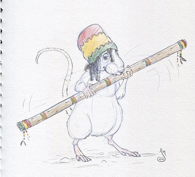 .@AnimalAlphabets is up to R so I sketched a quick Rasta Rat with a Rainstick for this morning's #KidLitArt #DailyDoodle. I added a quick scribble of color to help rep the Rasta. #Rasta #Rat #Rainstick