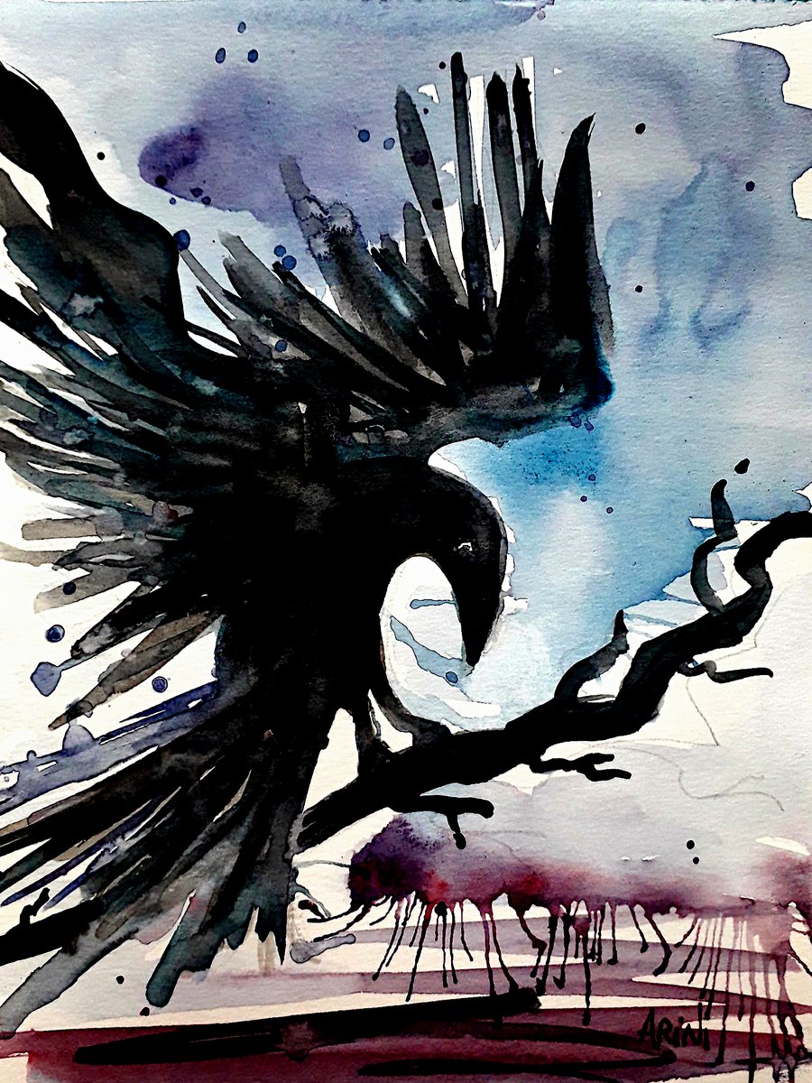 Raven-7 #watercolor on A5 paper AVAILABLE #Raven #ravenart #ravenpainting #crow #crowart #crowpainting #painting #artist #art #watercolorpainting #watercolour #aquarelle #corbeau