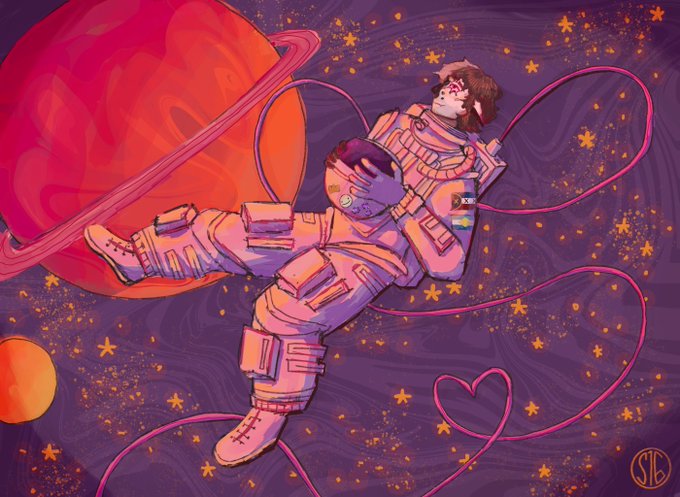 spaceboo. in space with ranboo even ditys by @rawrwhal !!! wowowow the colors were so cool for this one!!! it was very fun to draw + tbh the stickers on the helmet and the flags were my favorite part :D #rawrdtiys #ranboofanart #ranbooart