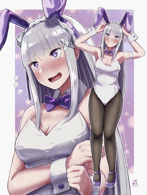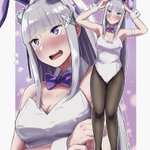 「スバル、こ これはあなたが言ってた、ばにーのすーつなの?」 "Subaru, t-this is the bunny suit that you said?" #リゼロ #Rezero #Reゼロから始める異世界生活 #イラスト #illustration #エミリア #スバエミ #bunnysuit