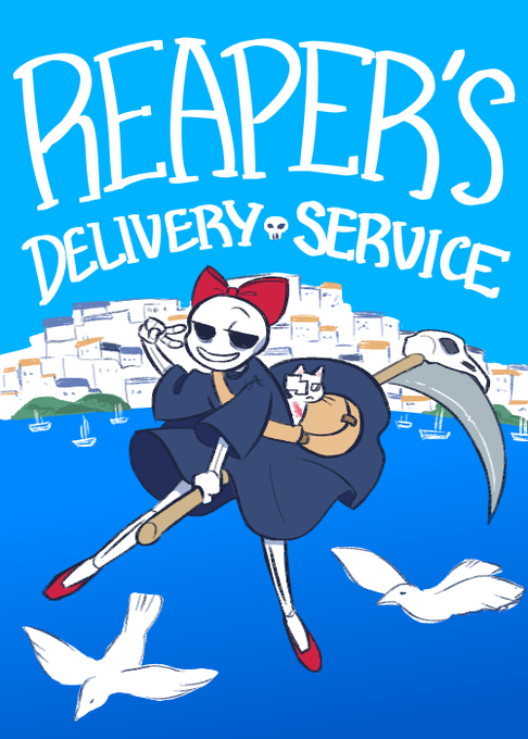 for day 5 of #reapember2021 i give reaper's delivery service! (the delivery is death) i thought it'd be funny if reaper used his scythe as a broom ᕕ( ᐛ )ᕗ