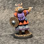 This Henchwoman from @reaperminiatures #bonesv is sick of your BS. (I love the Henchwomen set.) #paintslam22 #reaperminiatures #reapermini #miniaturepainting #miniatures #painting #paintingminiatures #paintingminis #art #dndart #dndminiatures #henchwoman #mace #shield #nmm