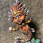 This is Kal Fire. She’s a wizard with the soul of a Phoenix. Fire spells are her specialty. (The model is @reapermini’s Juliette the Sorceress with wings added.) #reaperminiatures #reapermini #sorceress #dndminiatures #dndart #miniatures #painting #paintingminis #paintslam22