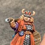 This Henchwoman from @reaperminiatures #bonesv is sick of your BS. (I love the Henchwomen set.) #paintslam22 #reaperminiatures #reapermini #miniaturepainting #miniatures #painting #paintingminiatures #paintingminis #art #dndart #dndminiatures #henchwoman #mace #shield #nmm