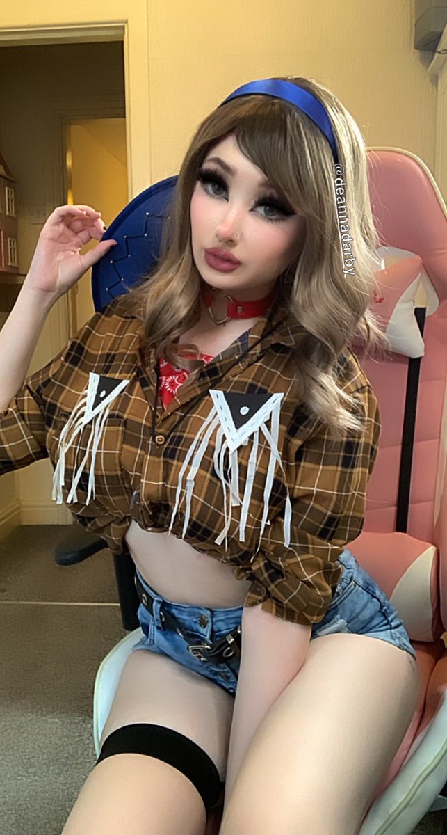 🤠LIVE NOW ON TWITCH🤠 Can I get a yeehaww with this Rebecca Chambers cowgirl cosplay fit? Want me to treat your wounds then come on by 👉🏻🥺👈🏻 m.twitch.tv/deannadarby @RedPLTGaming @DeadByBHVR #uwu #Egirls #DeadbyDaylight #smallstreamer #dbd #cosplay #rebeccacosplay #cowgirl
