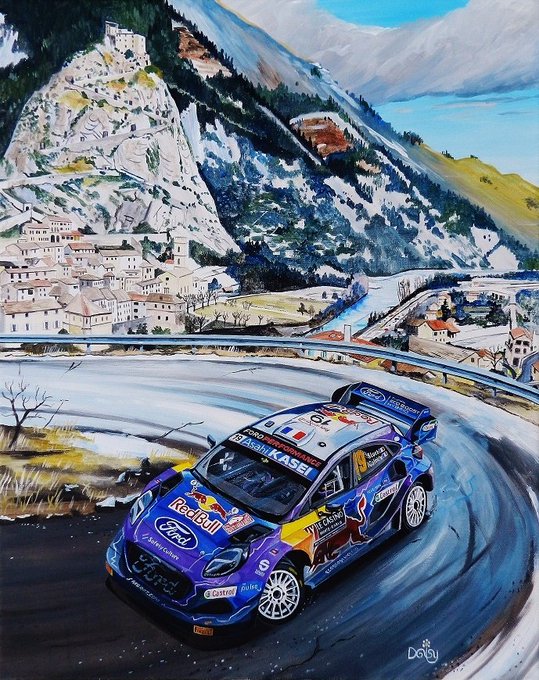 On the final stage of my Rallye Monte Carlo 2022 painting This is a non-commissioned canvas so will be for sale! PM me? #RallyeMonteCarlo #artistsontwitter #painting #MSPORTERS #fordperformance #RedBull #WRC2022