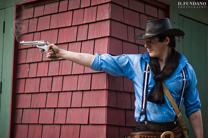 Howdy there, stranger. That’s a mighty big iron ya got on yer hip… What’s that? Yer lookin’ fer an outlaw by the name of Texas Red? Photo: D Fundano #cosplay #cosplayer #coser #reddead #reddeadredemption #reddead2 #arthurmorgan #reddeadcosplay #cowboy #bigiron #newvegas