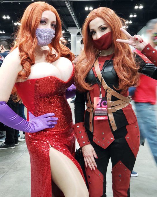@mew_nightmare and I at @comicconla 2021! See you next time! #JESSICARABBIT #comicconla #redheads #cosplay