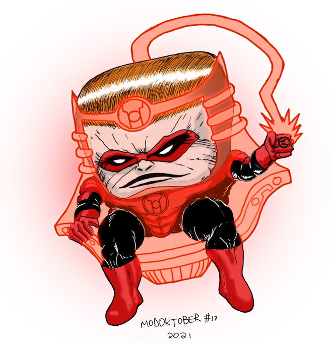 #17. That time MODOK ran off and joined the Red Lantern Corps. #modoktober2021 #modok #modoktober #marvel #greenlantern #redlantern #red #lantern #corps #dc #inktober #inktober2021 #oa