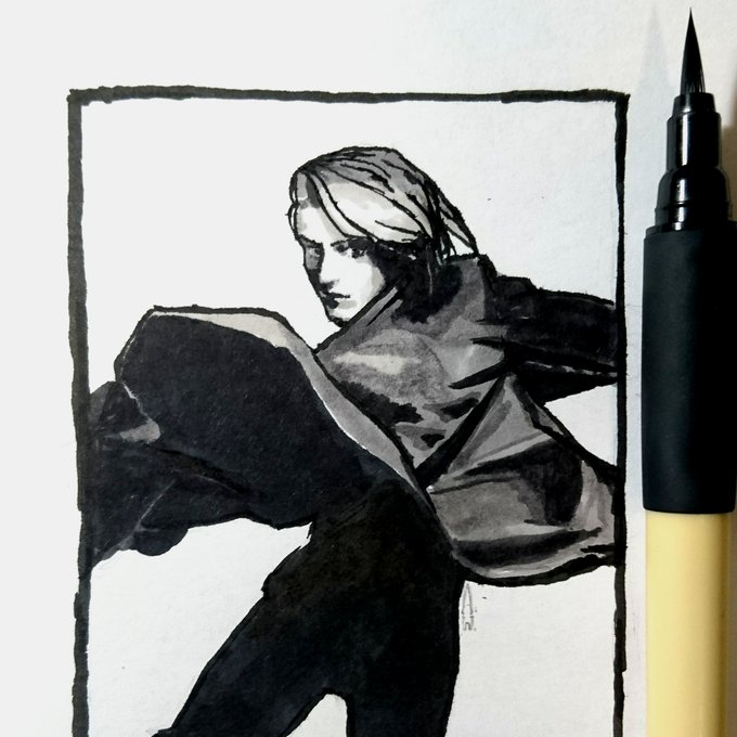 I looked for some dynamic poses on Pinterest and couldn't help but draw this one 😄 #art #Inktober #Inktober2021 #drawing #boy #longhair #illustration #inking #artontwitter #pose #anatomy #relations