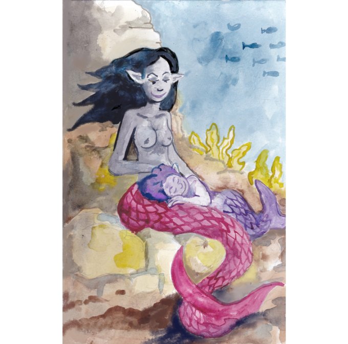 On day twenty-five of #mermay2022 - a #mermaid rests #relaxed on her #sister's lap. #watercolor #watercolorpainting #painting #mermay #painting #mermaids #child #MermaidIllustration #Mermaidart #WacomMerMay2022 #watercolor #watercolour #Illustration #seattleillustrator