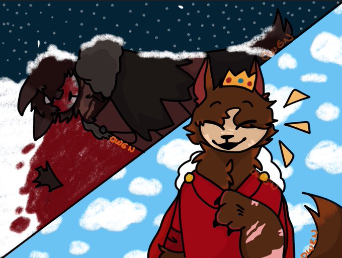 // cw blood two different stories of two different kings. one died; dethroned, in pain, alone. the other lived; dethroned, happy, surrounded by friends. [ #Hermitcraftfanart #3rdlifefanart #rendog #rendogfanart ]