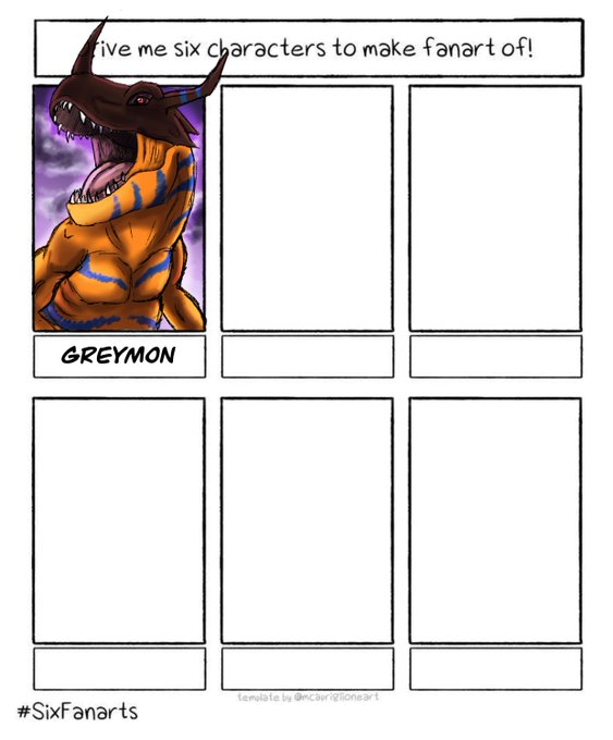 First one is done~ Wich one should i do next?! Just animal like characters!!! #sixfanarts #fanart #digimon #greymon #anime #Manga #digitalart #digitalartist #request #requestart