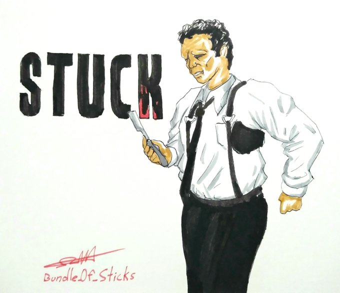 Inktober 2021 Prompt no.12 - “Stuck” 👂🏼 🎶Clowns to the left of me, Jokers to the right, Here I am, Stuck in the middle with you🎶 #inktober #inktober2021 #inktober2021Stuck #inktoberday12 #artistsontwitter #traditionalart #Stuck #reservoirdogs #michaelmadsen #MrBlonde
