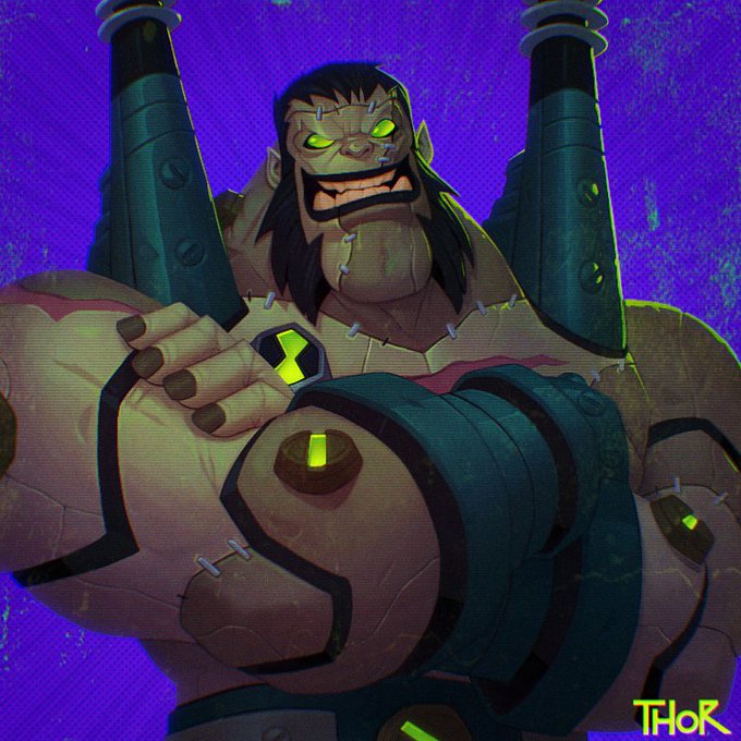 Frankenstrike: Transyliano do planeta Anur Transyl. Possui poderes eletrocinéticos, assim controlando a eletricidade e lançando raios/feixes de energia verde. A eletrocinese lhe permite também levitar objetos ou a si mesmo.🟢 #digitalArt #ilustration #Ben10 #restoretheomniverse