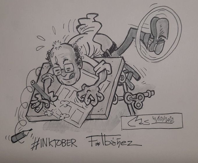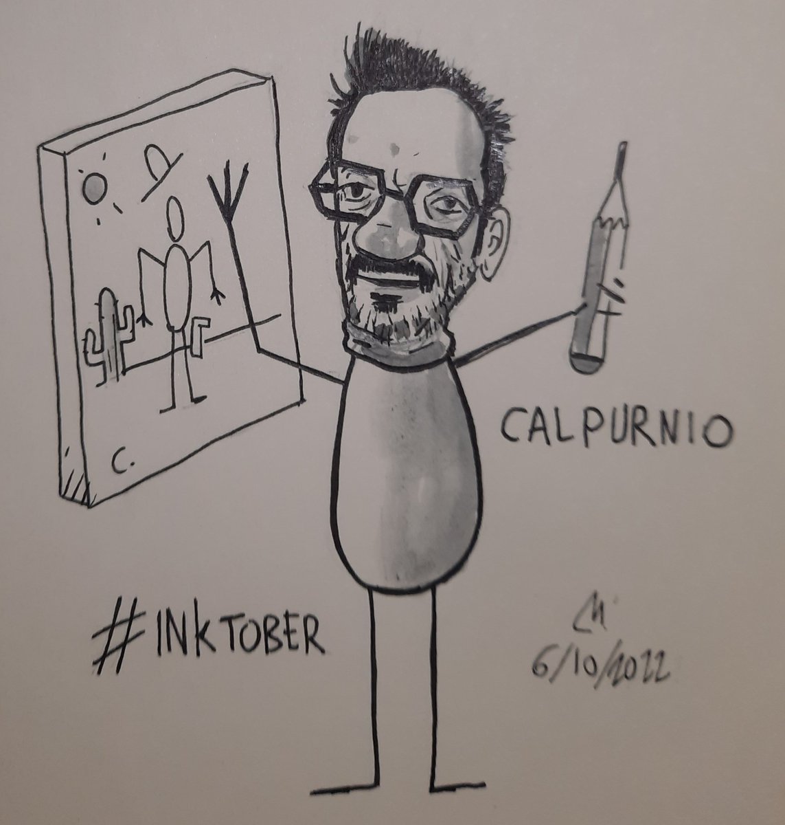 #Inktober , #inktober2022, #comic, #ilustracion ,#retratos. Sigo dibujando a los que dibujan, hoy toca el 6: Calpurnio @Calpur100. Cuando menos es más, muy grande el Cuttlas.