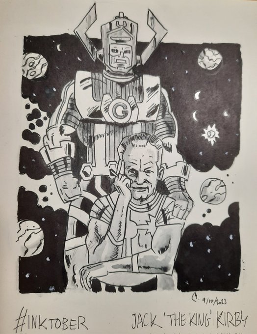 #Inktober, #tintubre, #inktober2022, #comic, #ilustracion ,#retratos 9: The King, Jack Kirby, @JackKirbyMuseum @jackkirbycomics. Hail to the King !!