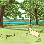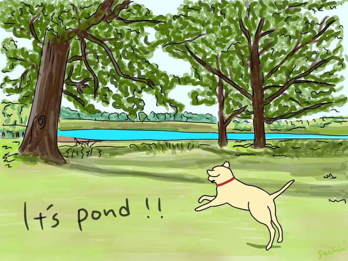 It’s pond! Can I swim? 池だよ!泳いでいい?💦🏊♂️ #イラスト #犬 #ラブラドール #レトリバー #大型犬 #illustrationdog #dogpainting #digitalpainting #dog #labrador #retriever #hewillanyway #ダメって言っても飛び込む