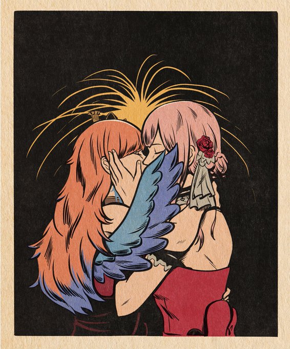 Kissing under the fireworks. Happy new year guys! 🎊 #retro #callillust #artsofashes #holomyth #takamori #happynewyear