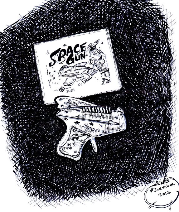 #penandink drawing in honor of #inktober2022. Not the prompt of the day, but a little drawing called, "Space Gun." #retrofuture #atompunk