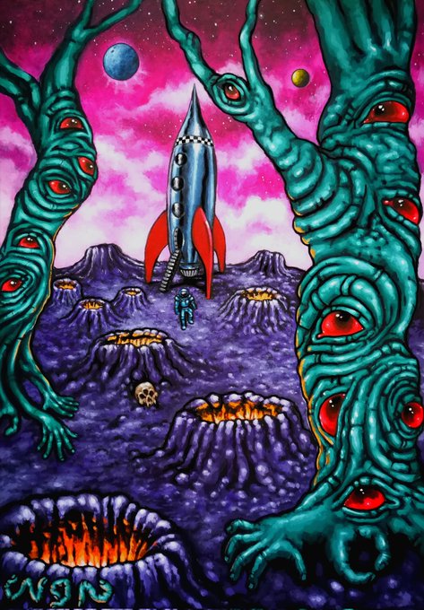 My 'Starblazer' #SciFi #Painting #Acrylics on card #AcrylicPainting #RetroSciFi #Surrealism #Artwork #Art #Artist #Illustrator #SciFiArt #Illustration #ScienceFiction W9N