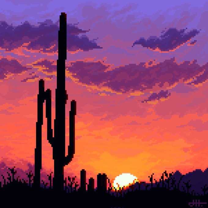 Cactus at Sunset Download this wallpaper for free to your mobile, available on my patreon, link in bio. Thanks! @Pixel_Dailies @pixil_art #pixelart #art #illustration #digitalart #retro #aesthetic #lofi #retrowave #vibes #goodvibes #sunsetphotography #sunset #cactus #landscape