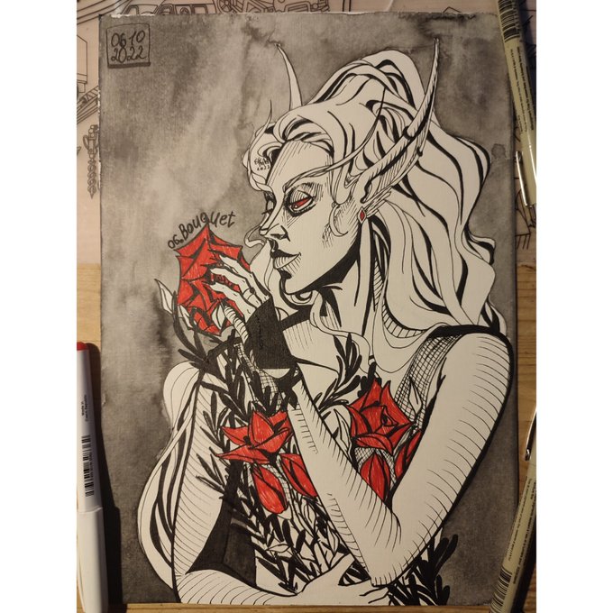 Не совсем тайный и не совсем поклонник приславший букетик из Ревендрета 🤔🙄 #inktober #inktober2022 #bloodelf #HighElf #undead #worldofwarcraft #bouquet #shadowlands #traditionalart #revendreth #venthyr