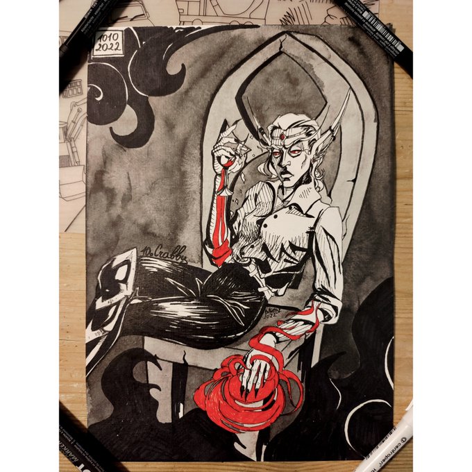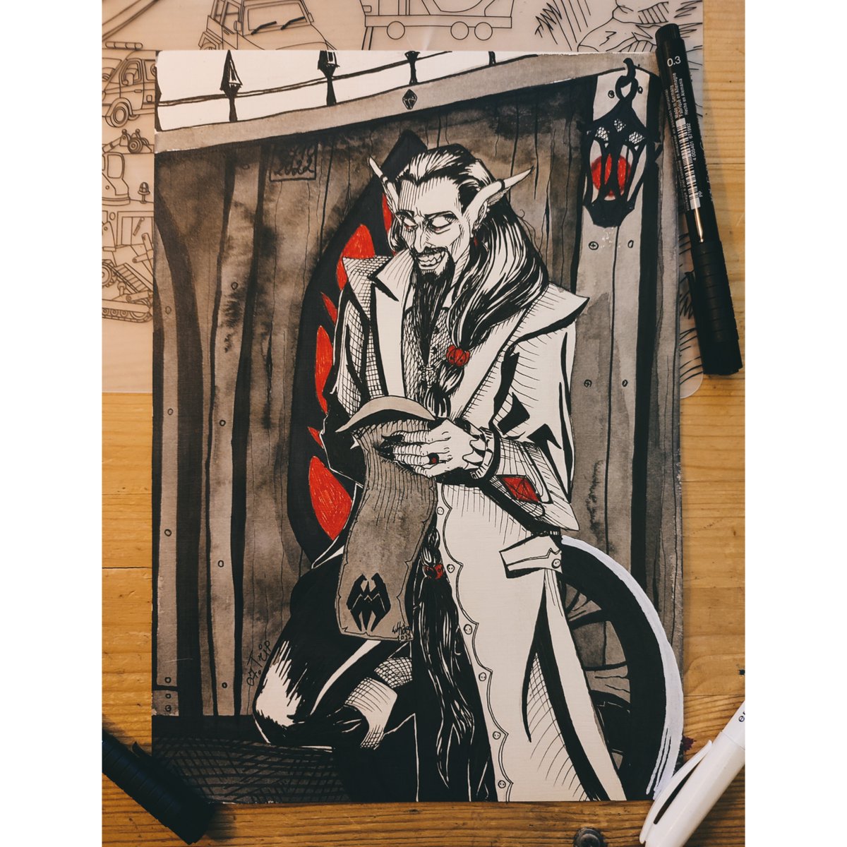 Finished up a lovely illustration shot of a fancy vampire lord in his study room! 🧛🏻 You can view it here deviantart.com/fkdemetri/art/… Commissions are open! .w. #vampire #fantasy #dnd #dndart #dndcharacter #commissions #commissionsopen #revendreth #venthyr #goth