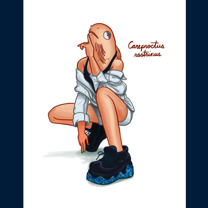 Reverse Mermay #6: The Salmon Snailfish is a squishy fish that lives on the seafloor. The "whiskers" on its chin are actually modified fins covered in tastebuds. It's not actually native to California, but they're at @MontereyAq! #mermay #reversemermaid #fish #education #art