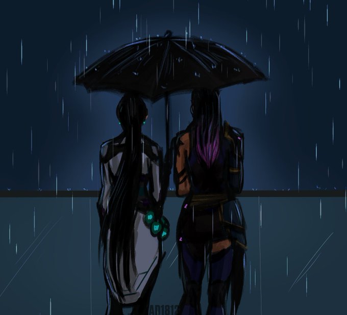 Day 3 - rainy day under 1 umbrella can't make anything better, sorry #reyge #reygeweek #ValorantArt #Reyna #Sage