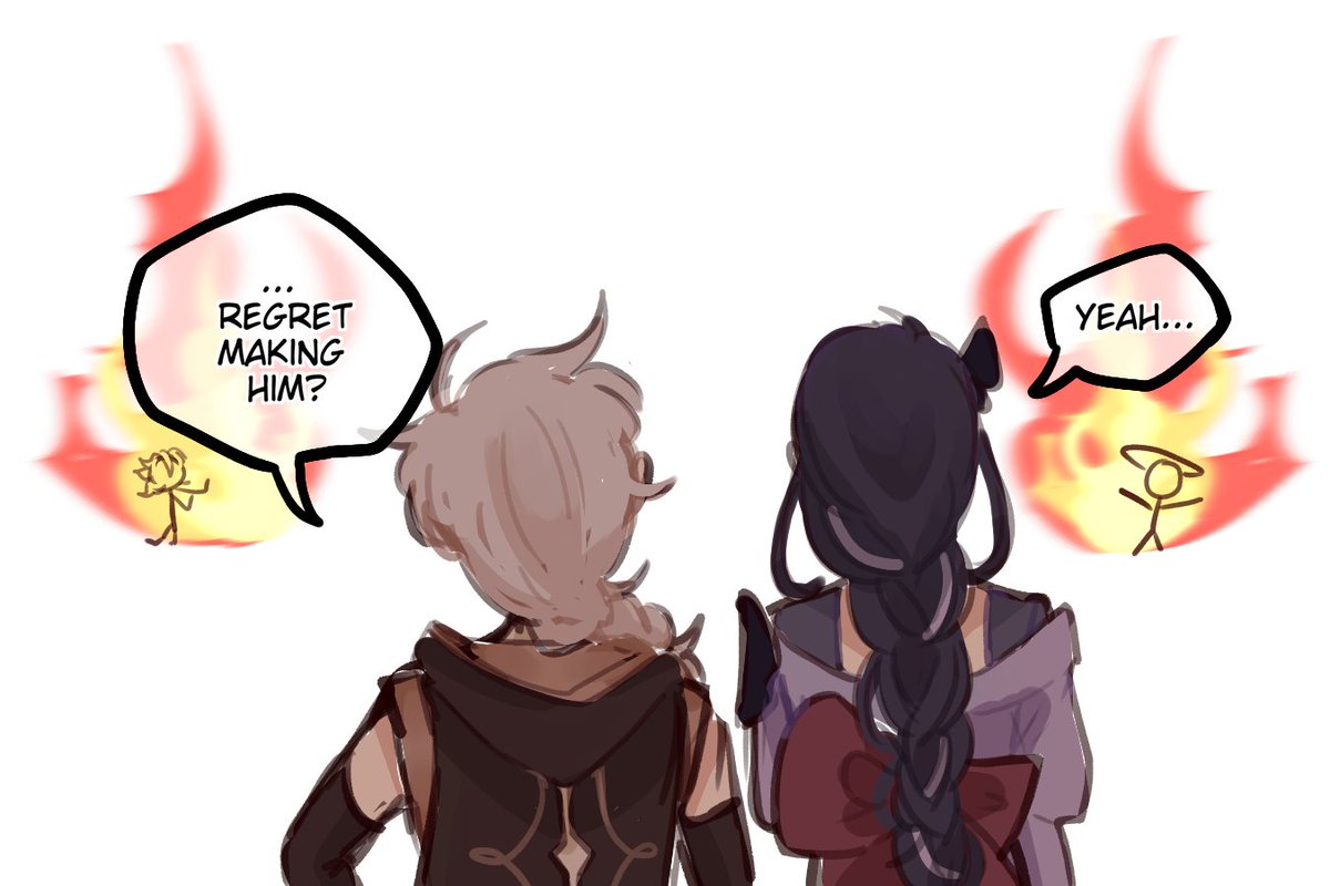 More of the [Albedo was created using Dainsleif’s DNA and everyone misinterpreted it except for Dainsleif, who was unaware of the entire thing] headcanon #rhinedottir #dainsleif #daindottir #genshinimpact