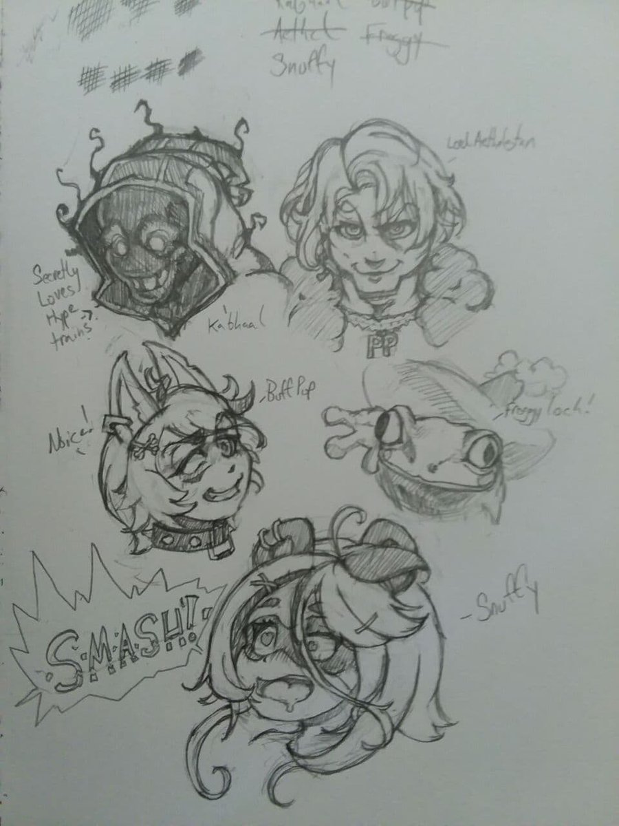 I was away from my art tablet and video game, so I broke out the pencil and paper and doodled some of the Vtubbers that keep me sane! @KabhaalVT #aethelart #buffpup #ribbart #snuffyart (get rekt with support, nerds)