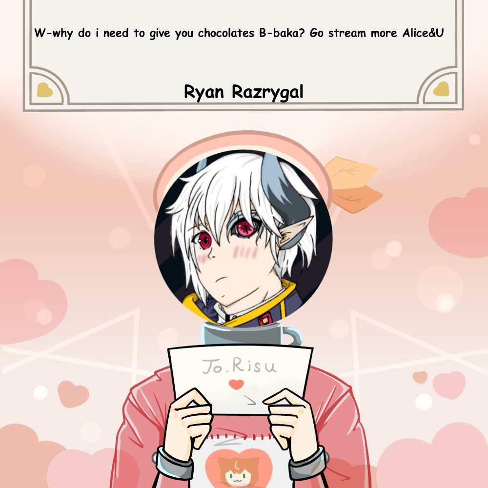 I doubt I'll get any chocolates with this attitude. On a serious note stream more Alice&U. It'll help out if you feel under appreciated 🥰 #GambaRisu #Risuners #RisuVcards