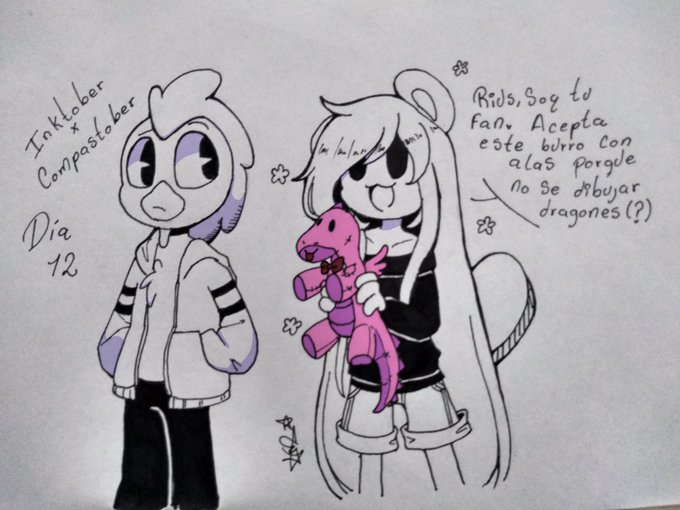 Dia 12 del inkcompas toca tu compa fav y tu. Mi compa favorito es Riusplay ( ^∇^) en el inktober hay que dibujar un dragon y lo siento pero soy pesima dibujando dragones, la primera vez que dibuje a charmander me salio un barney #Inktober2019 #riusplay #compastober