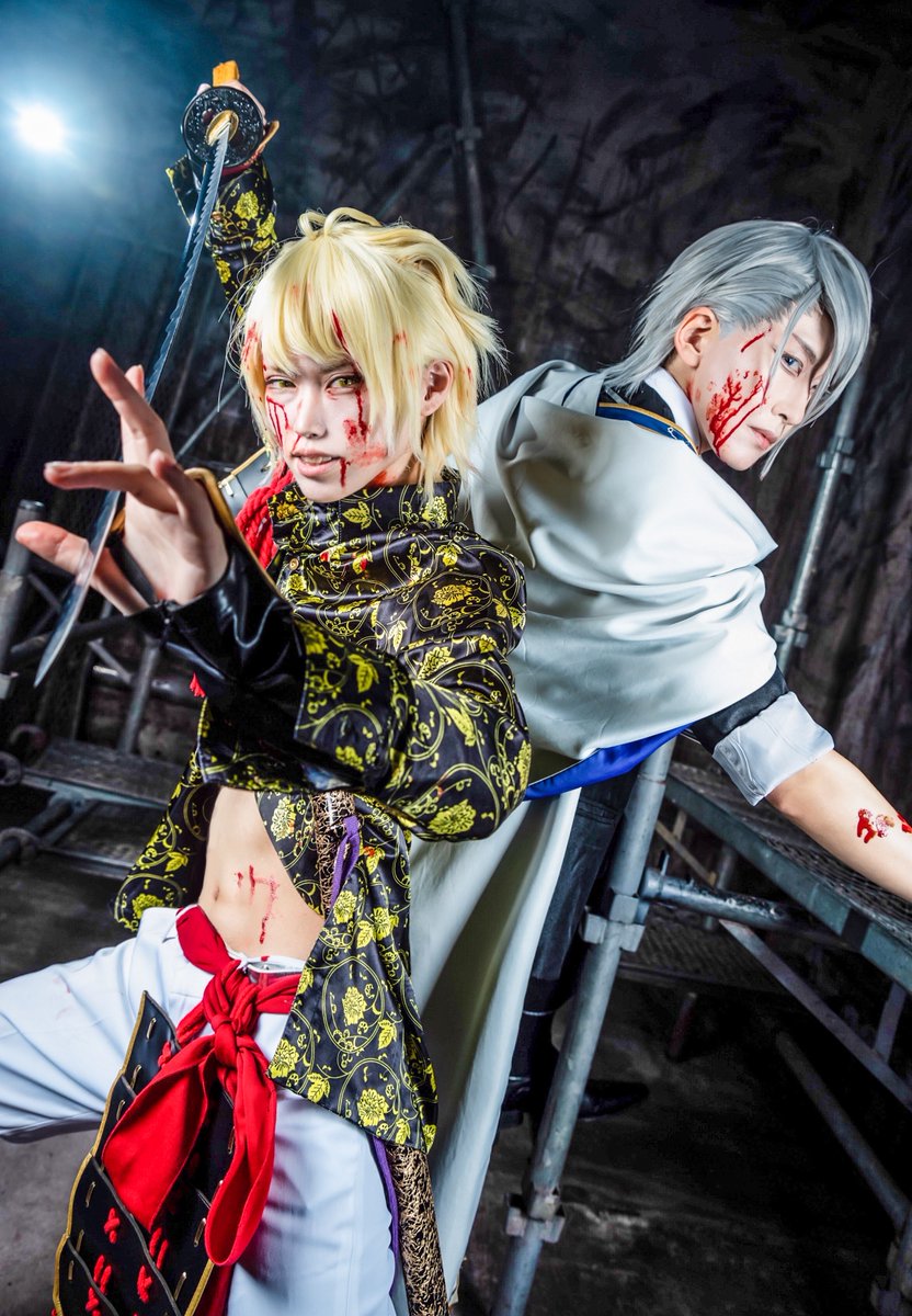 {Cosplay コスプレ 刀剣乱舞 腐れ縁} 血糊 ⚡️ YANKEE SWORD 💨 photo🌪 @rom_river 山姥切長義💎@onlycolor_cos 様 南泉一文字💎@ misty_make #riverzphoto