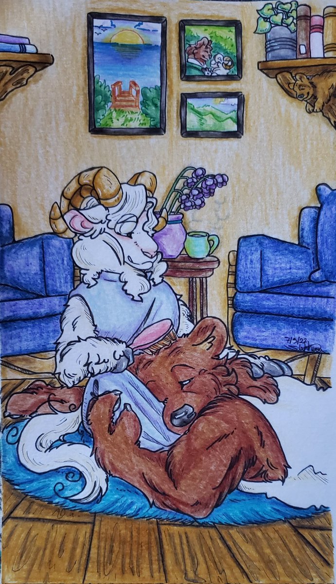 Honey, wake up, more Riz x Pina art dropped #BEASTARS #rizbeastars #pinabeastars #rizpina #rizxpina #ArtistOnTwitter #sfwfurry #beastartsfanart #sfwfurry #artwork #drawing #traditionalart #furry #riz #pina